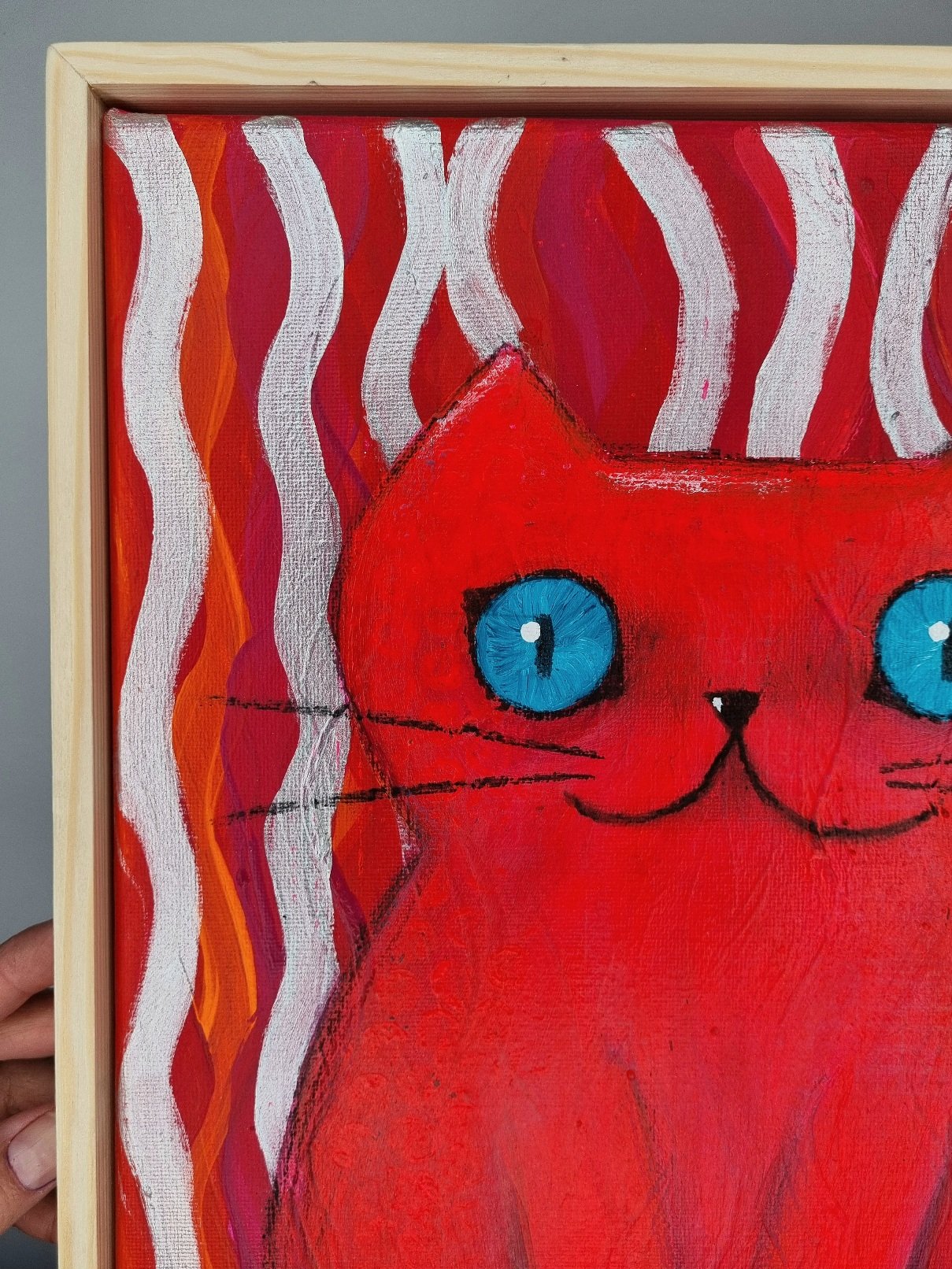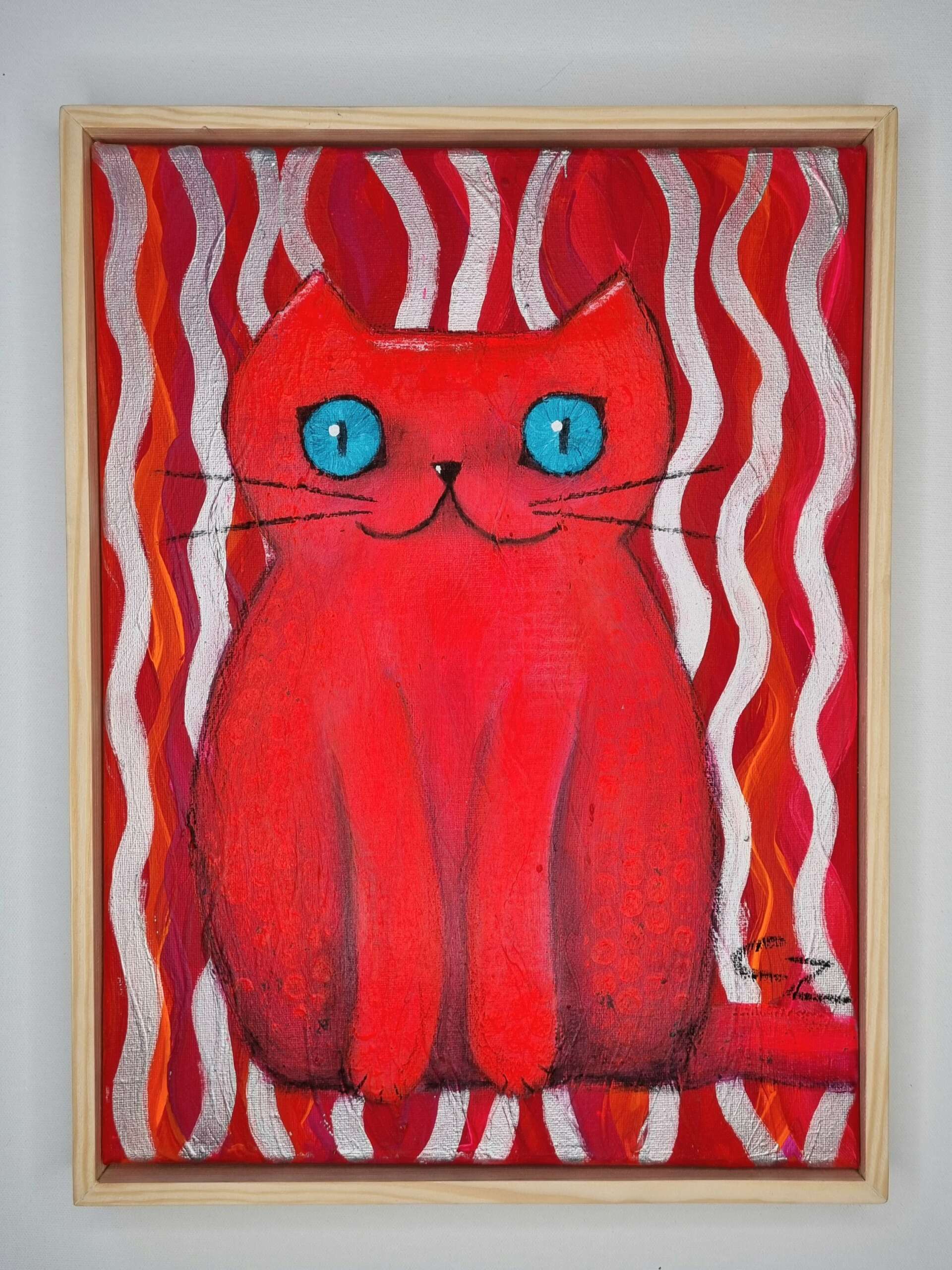 Pop Art Miezekatze in leuchtenden Farben – gerahmt und fertig zum Aufhängen!