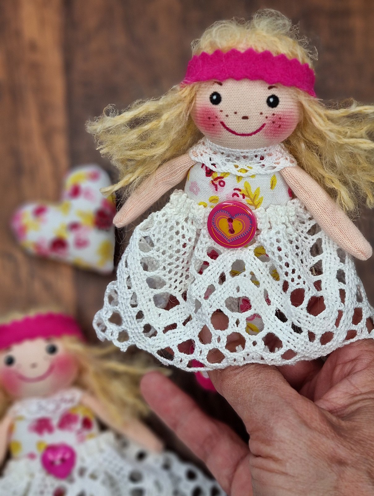 ❤️ Alle Kleinteile, Köpfe, Arme und Haare nähe ich sehr sorgfältig mit reißfestem Qualitätsgarn per Hand an.