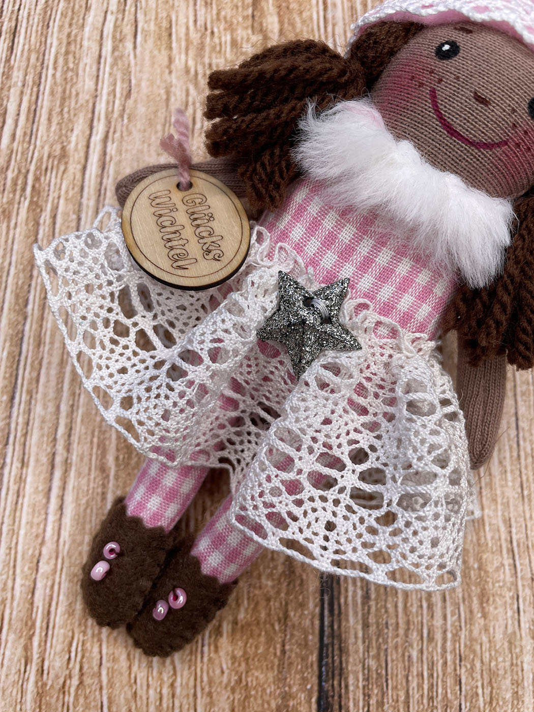 ❤️ Viel Augenmerk lege ich auf Details wie passende Knöpfe, Spitze, Borten, kleine Begleittierchen … und natürlich gibt es die Wichtel in jeder Hautfarbe!