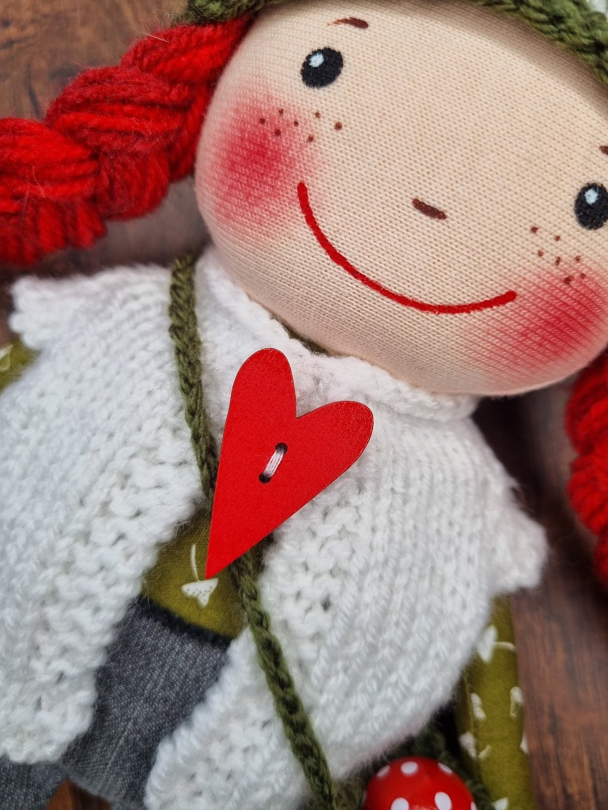❤️ Viel Augenmerk lege ich auf Details wie passende Knöpfe, Spitze, Borten, kleine Begleittierchen … und natürlich gibt es die Wichtel in jeder Hautfarbe!